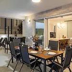 Willa oferuje udogodnienia z wyżywieniem we własnym zakresie, takie jak wyposażony aneks kuchenny z miejscem do jedzenia i jadalnią na świeżym powietrzu. W kuchni znajdują się czajnik elektryczny, lodówka i piekarnik. Do dyspozycji Gości jest zewnętrzny basen, gra w rzutki.